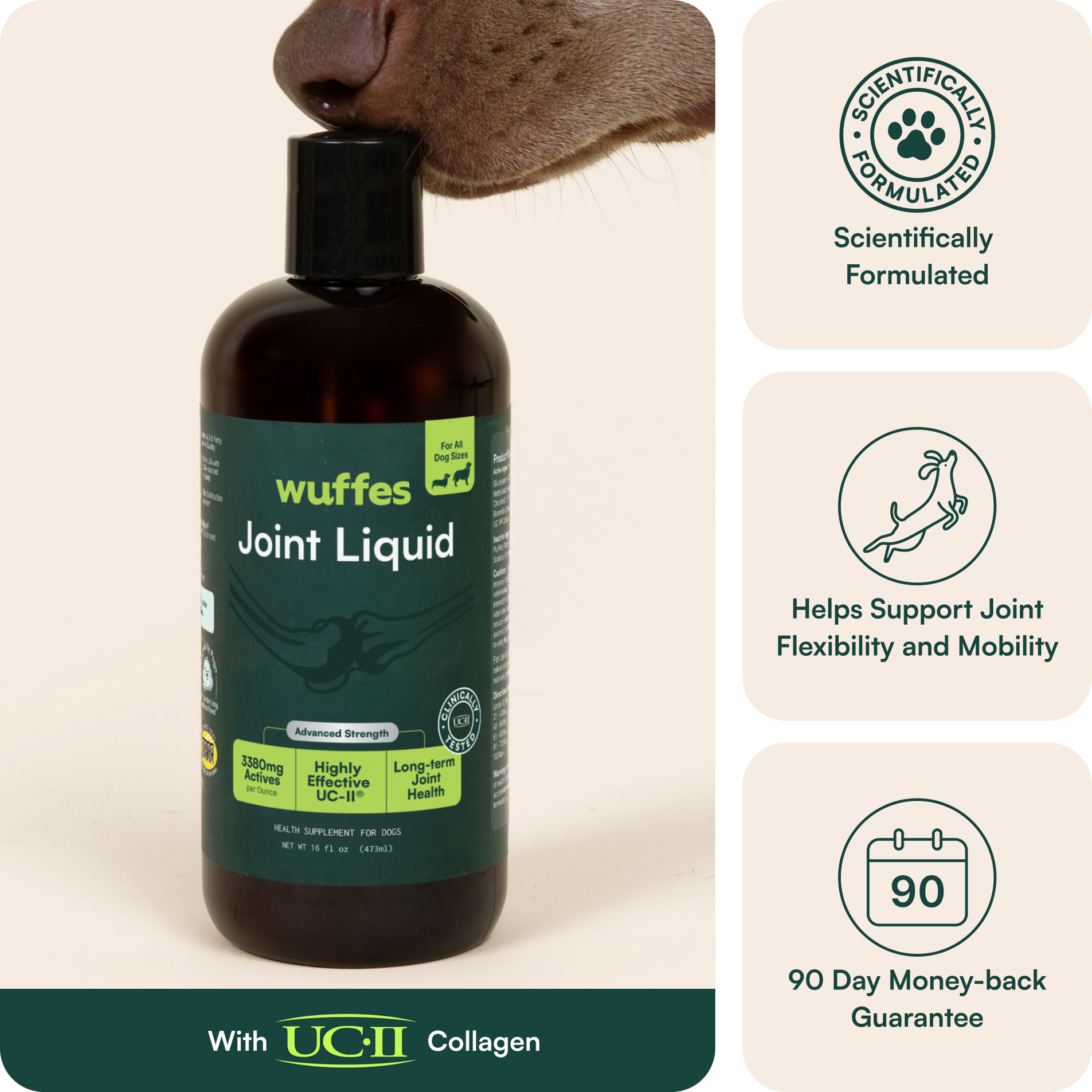 Choose between our Advanced Hip & Joint Support chews and Advanced Joint Liquid based on your pup’s preferences and levels of discomfort. They’re highly concentrated to protect and actively enhance bone & joint health.